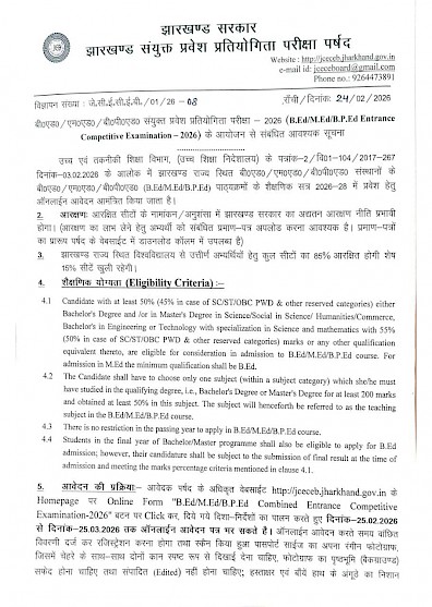 Advt. No. 08 dated-24.02.2026 बी०एड० संयुक्त प्रवेश प्रतियोगिता परीक्षा - 2026 (B.Ed. Entrance Competitive Examination - 2026) के आयोजन से संबंधित आवश्यक सूचना